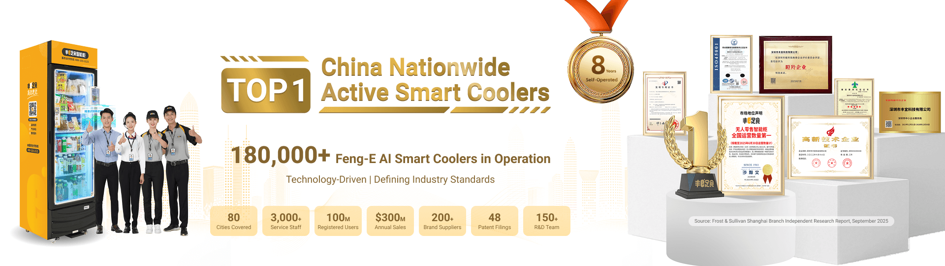 The company follows a fully self-operated nationwide model. By 2025, Feng-E manages more than 180,000 smart coolers across 80 cities, backed by a field operations workforce of over 3,000 professionals.